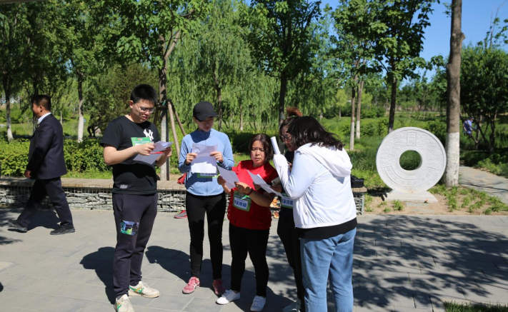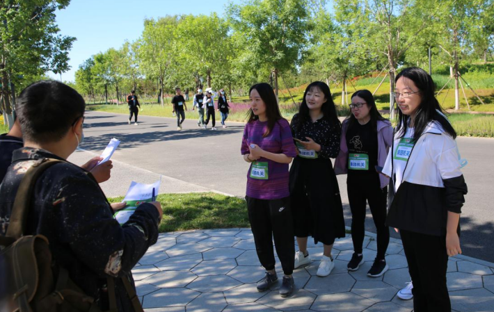 本次比賽沿城市綠心森林星型園路設(shè)置10個競賽點,每支參賽隊伍對應(yīng)2個競賽點,每個競賽點設(shè)置5道必答題及2道風(fēng)險題。內(nèi)容聚焦生態(tài)環(huán)保、綠色發(fā)展等方面。比賽開始后,參賽隊伍迅速尋找各自對應(yīng)競賽點開始答題。