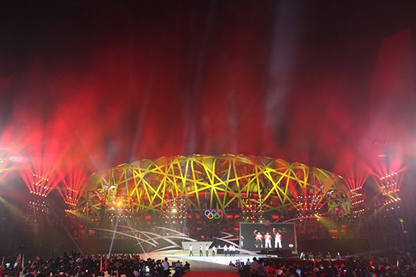 由國家體育總局和北京市政府主辦,北京電視臺承辦的“一路拼搏——慶祝中國奧運代表團凱旋主題晚會”于2012年9月3日晚在北京奧林匹公園中心區慶典廣場舉行。初秋的慶典廣場星光璀璨、明星云集,剛剛在第30屆倫敦夏季奧運會上載譽而歸的林丹、易思玲、曹緣、陳一冰、張成龍、趙云蕾, 陳定、鄒市明、雷聲、李娜、蔡赟、傅海峰、張楠等13名奧運冠軍集體亮相,不僅現場用精彩的才藝表演展現了奧運冠軍的多才多藝,還講述了他們拼搏背后的成長故事,表達了對祖國和人民的感激之情。同時,成龍、譚晶、戴玉強、莫華倫、羽泉、朗朗、胡彥斌、齊秦、薩頂頂、李宇春、林妙可等演藝界明星鼎力助陣,用精彩的文藝演出為奧運冠軍慶功。